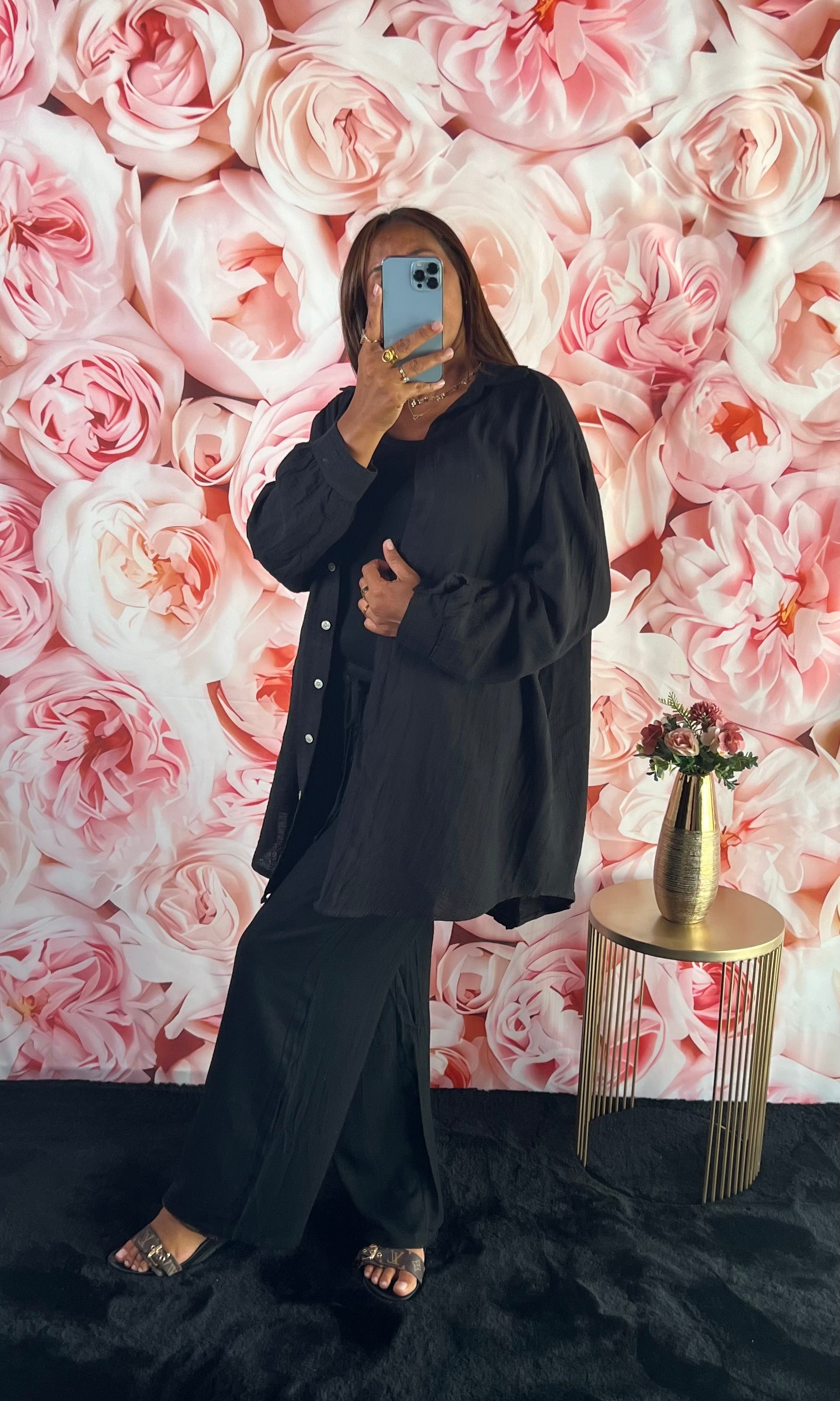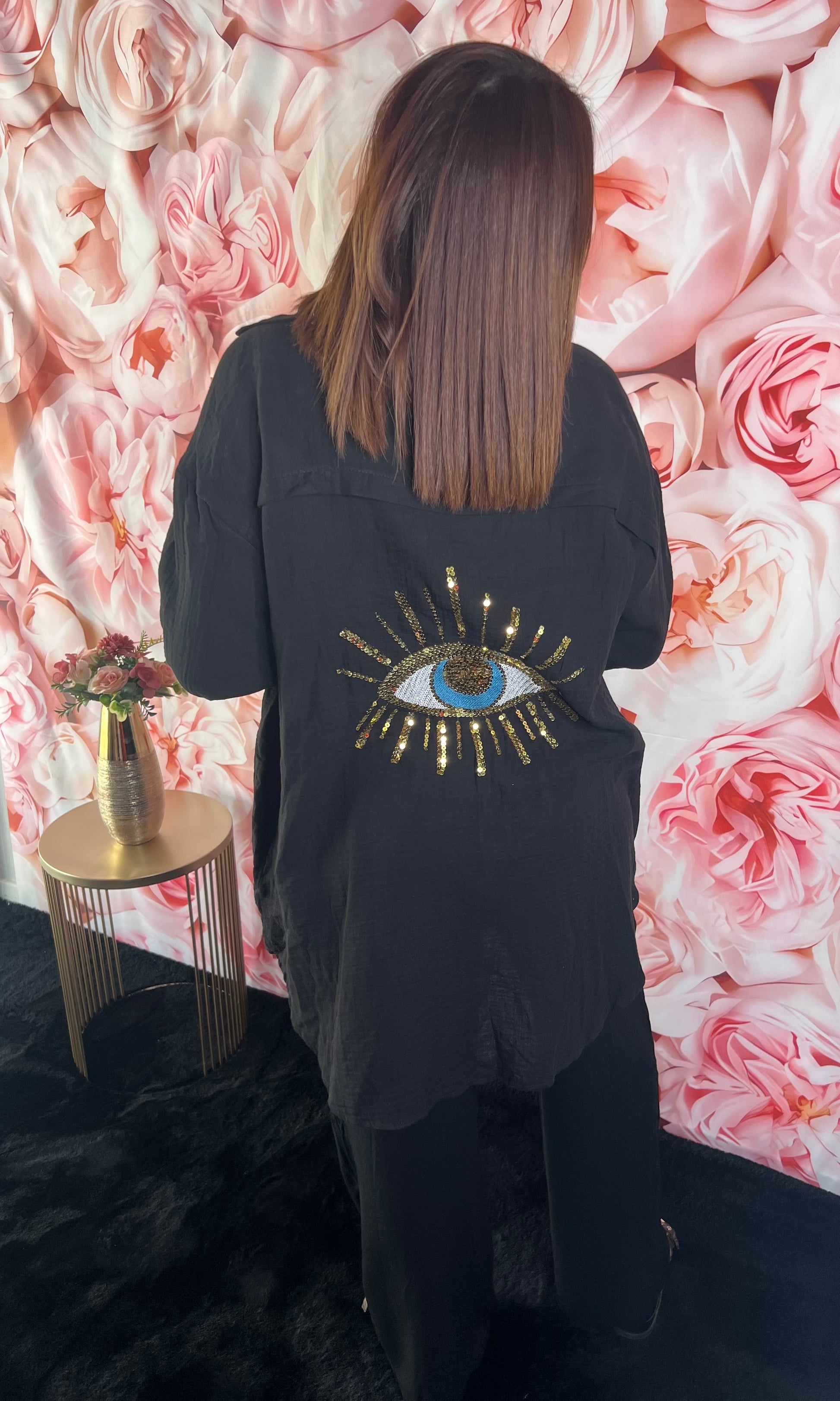 Chemise Gaz de Coton Noir Motif Œil