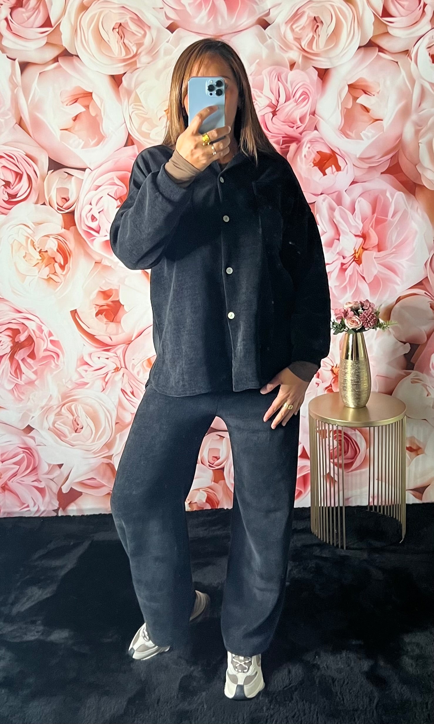 Cet ensemble de velours noir allie confort, douceur et tendance. Profitez de son toucher soyeux et de ses couleurs riches pour vous envelopper de chaleur et de confort. Parfait pour une soirée cocooning en amoureux ou une journée détente en solo. Ne résistez plus à son charme irrésistible !