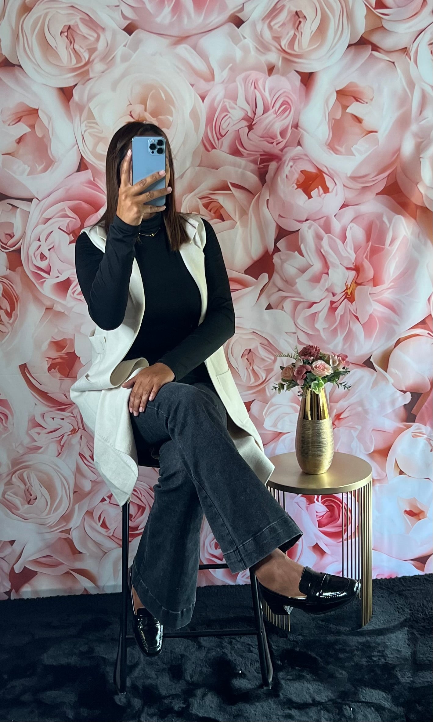 Complète ton look un jean FLARE et le gilet sans manches beige