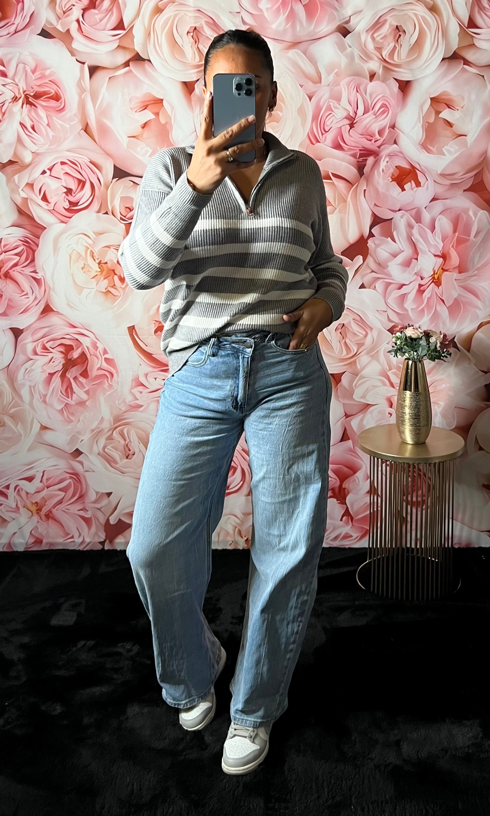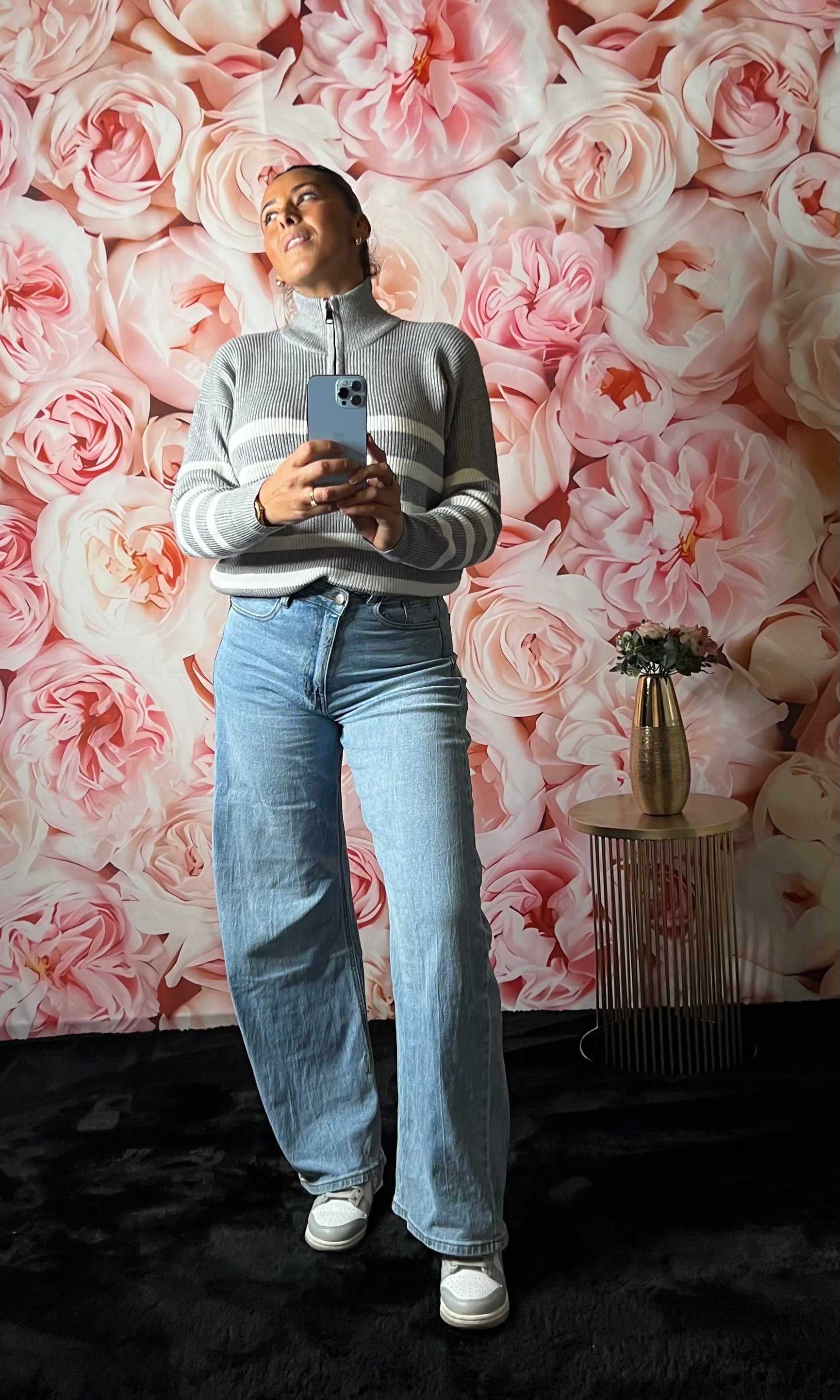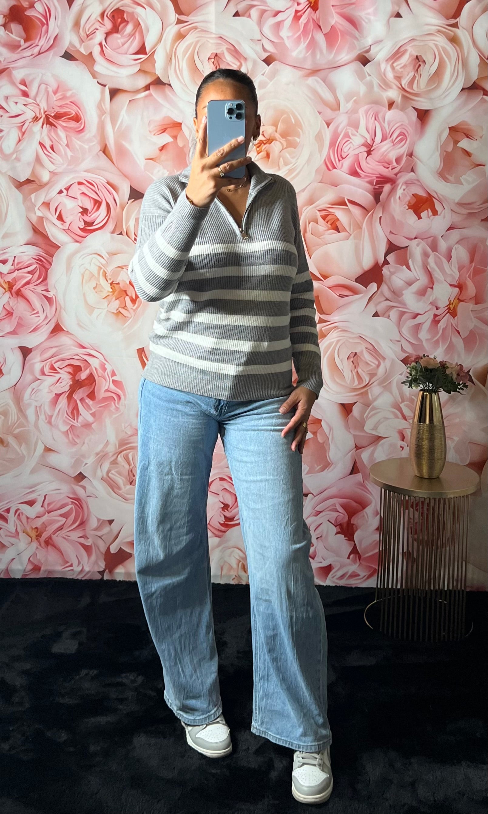 Découvrez notre pull en maille à rayures unique avec une fermeture au col élégante. Parfait pour les jours froids, restez à la mode tout en restant confortable. Ajoutez une touche de style à votre garde-robe avec cette pièce polyvalente et amusante. Le mannequin mesure 1,69m et porte généralement du M.