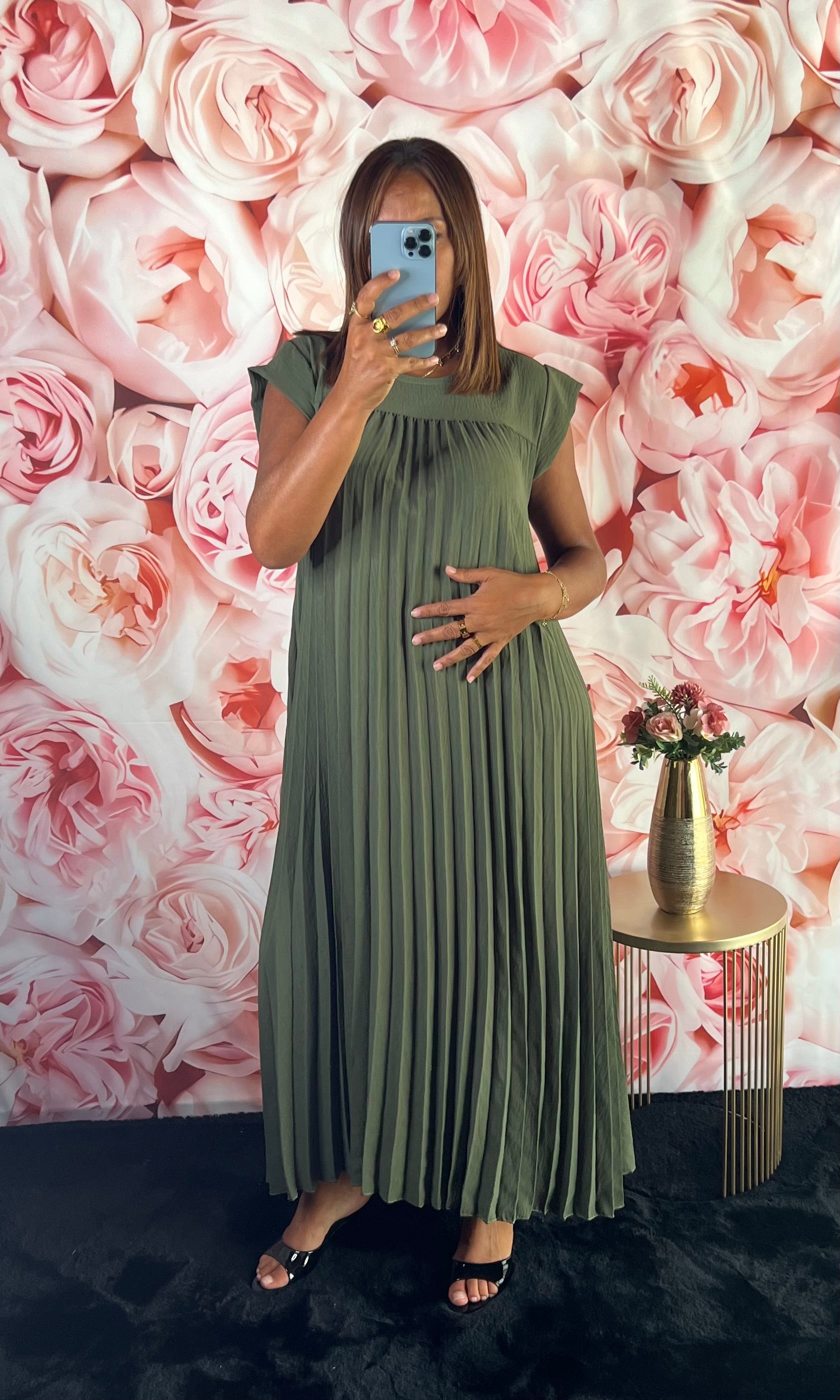 Robe Plissée Fluide Kaki